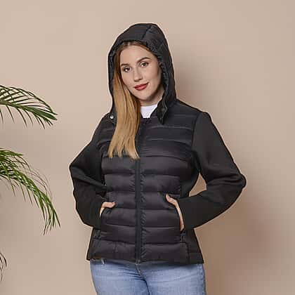 Winter Puffer Women's Jacket with Hoodie in Classic Black