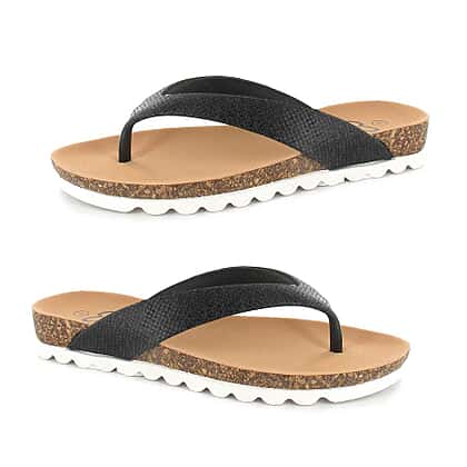 - Sparkling finishing of the bold black straps and the cork-effect midsole gives the sandals a lovely look