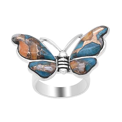 Santa Fe 3 Ct. Spiny Turquoise Butterfly Ring in Rhodium Plated Sterling Silver