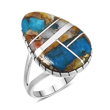 Grace your fingers with this alluring spiny turquoise split band ring designed by the Santa Fe collection for a bold and unique you. This ring is extensively crafted from a 925 sterling with a split band design. Inspired by a pear shape design, the bezel-set turquoise gemstone is separated by lines to give a geometrical look. Pair this vintage ring with your everyday wardrobe essential to complete your look. Also a perfect gift for your loved ones or those who love vintage jewellery.