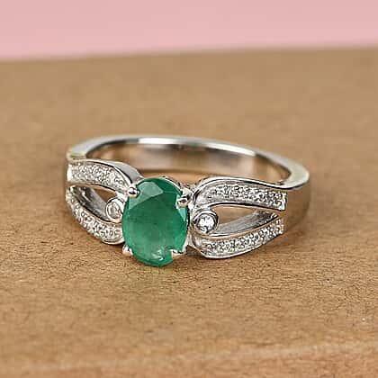 - STONE DETAILS: Oval faceted cut Premium Emerald and round faceted cut Natural Cambodian Zircons have been embellished onto this ring through prong setting