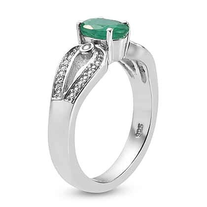 0.87 Ct. Premium Emerald and Natural Cambodian Zircon Ring in Sterling Silver
