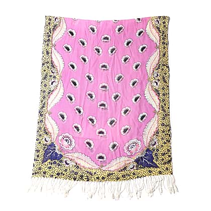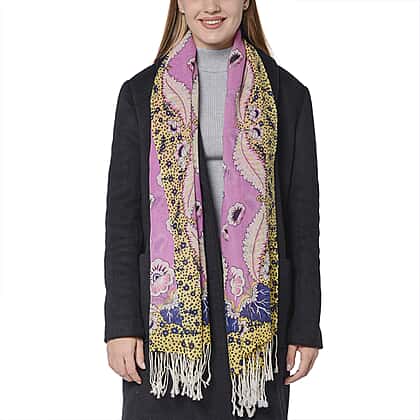 100% Wool Floral and Polka Dot Print Scraf Pink Colour