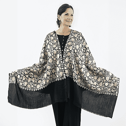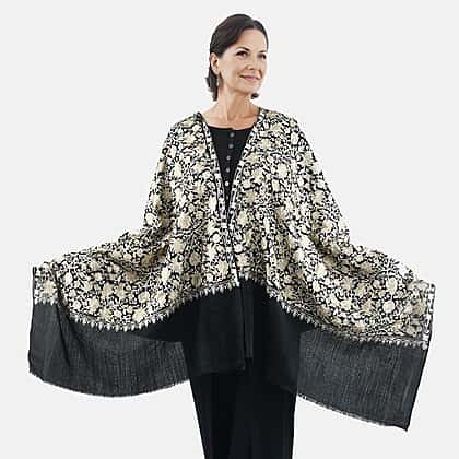 100% Merino Wool Silk Shawl with Hand Embroidered in Kashmir and Free 6ml Fragrance Oil