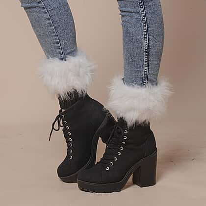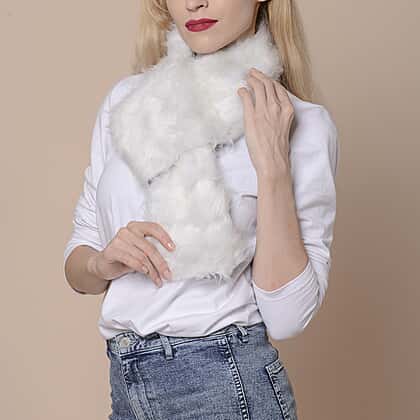 2 Piece Set - Faux Fur Collar Scarf (Size 96x14.5cm) and Boot Cuffs (Size 16.5x14.5cm) - White