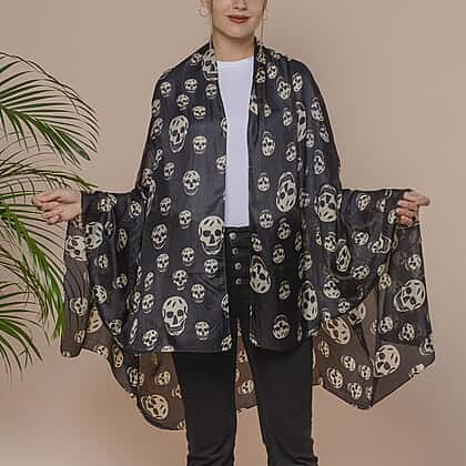 Black Skull Pattern 100% Mulberry Silk Scarf