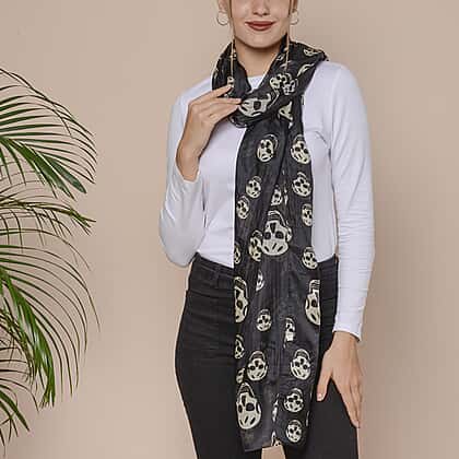 Black Skull Pattern 100% Mulberry Silk Scarf (Size 175x110 Cm)