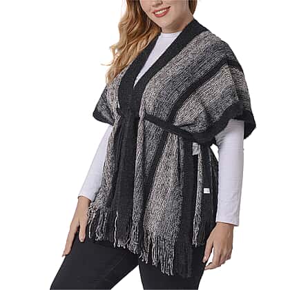 Black Striped Shawl Wrap with Waist Belt (Size 84x66+10cm)