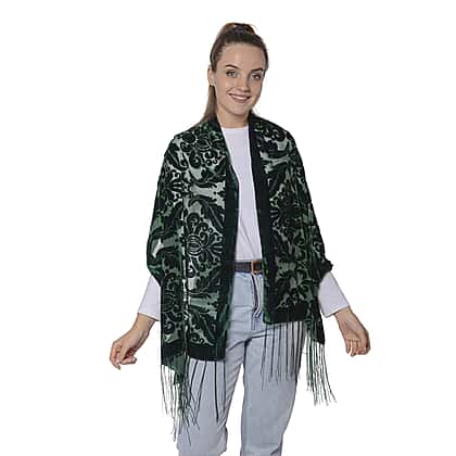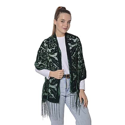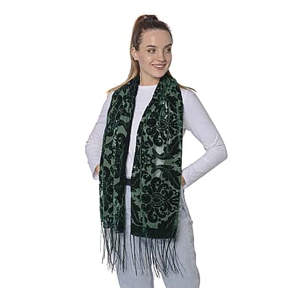 Burnout Damask Pattern Velvet Scarf with Fringes (50x160+15cm) - Green