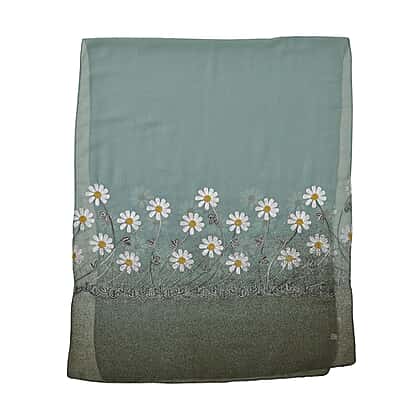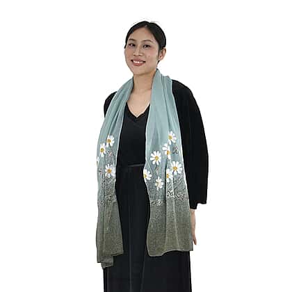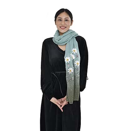 Embroidery Scarf with Flower Patten (Size 180x68 cm) - Teal