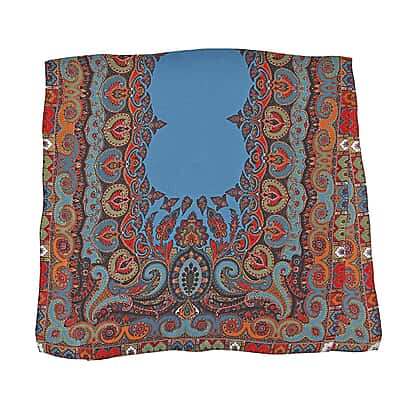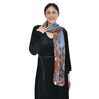 Super Soft Satin Bohemian Scarf with Nut Pattern (Size 180x85 cm) - Teal Blue, Red and Multi