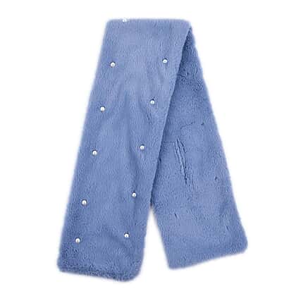 Faux Fur Scarf with Beads (Size 175x65 Cm) - Blue