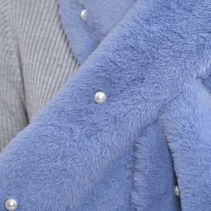 Faux Fur Women's Scarf with Beads Detailing - Blue