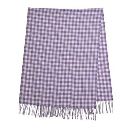 Checkered Pattern Knitted Scarf with Tassels (Size- 175x68 Cm) - Purple