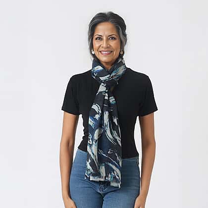 La Marey 100% Cashmere Printed Scarf (Size 190x70 cm) - French Navy