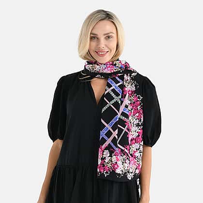 La Marey 100% Mulberry Silk Flower Scarf (Size - One Size) - Black