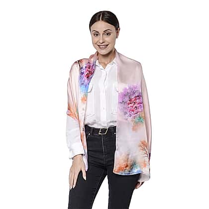 LA MAREY 100% Mulberry Silk Printed Scarf - Pink & Blue