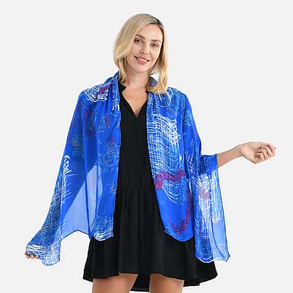 La Marey 100% Mulberry Silk Printed Scarf (170 x 65cm) - Blue