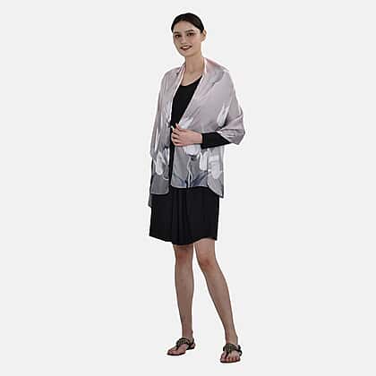 La Marey 100% Silk Tulip Floral Patterned Scarf (Size 170x52 cm) - Pink & White