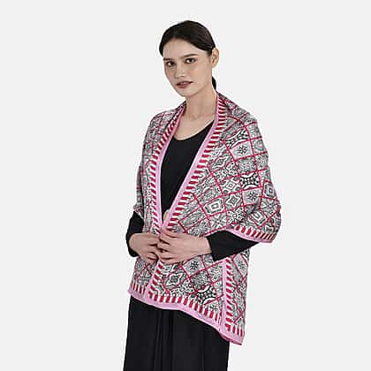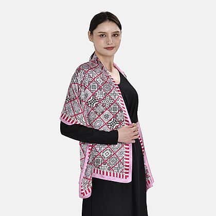 La Marey 100% Silk Artisan Printed Scarf (Size 170x52 cm) - Pink