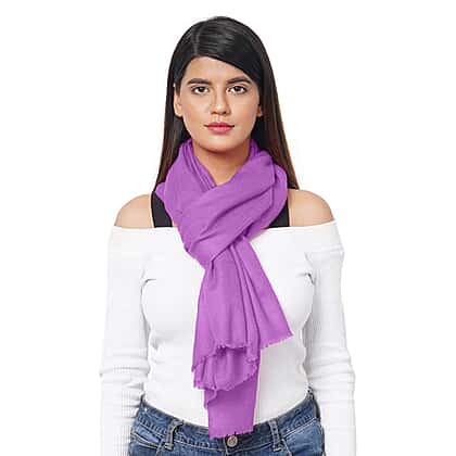 This winter, wrap yourself in the comfortable warmth of La Marey 100% cashmere pashmina scarf. Radiating timeless elegance, pashmina is known for its fine weave and incredible softness. Not only is the scarf soft on the skin with a gossamer texture, but it also boasts unmatched aesthetic value. The lavender scarf makes a versatile accessory, offering a range of styling options.
