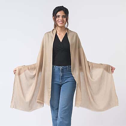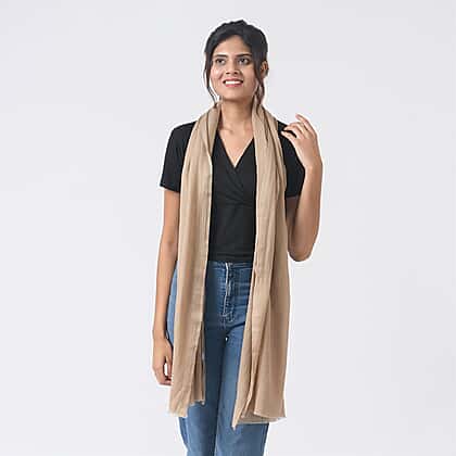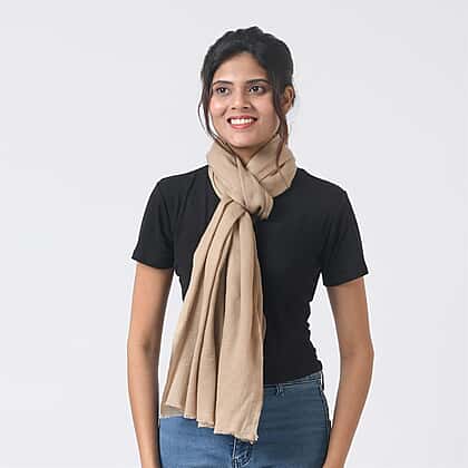 Mothers Day Gift Idea- La Marey 100% Cashmere Solid Scarf (Size 198x71 cm) - Beige
