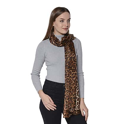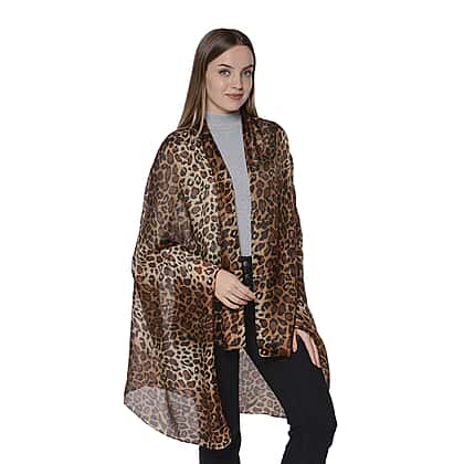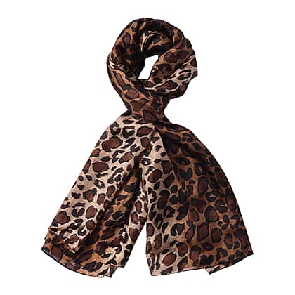 LA MAREY 100% Mulberry Silk Leopard Print Scarf in Brown Colour