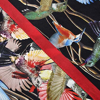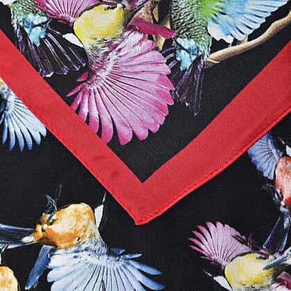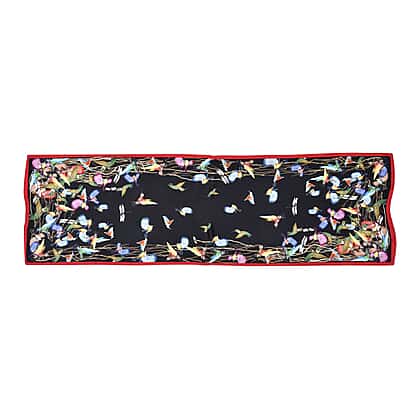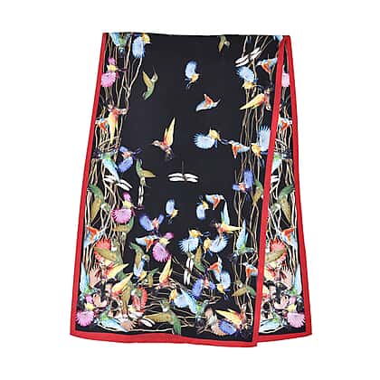 La Marey Silk Bird Pattern Satin Scarf - Black