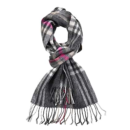 La Marey Woolen Checkered Pattern Scarf - Grey & Red