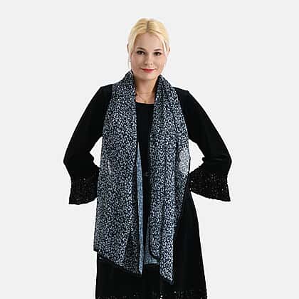 Limited Collection Leopartd Print Sparkling Sequin Evening Shawl (180 x 70 cm) - Black