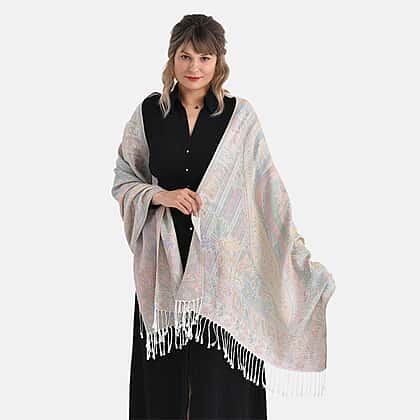 Wrap yourself in timeless elegance with this Paisley jacquard scarf with Tassels in off-white powder, designed to add a soft, feminine touch to any outfit. Crafted from a luxurious blend of 40% viscose, 40% acrylic, and 20% polyester, it offers a lightweight yet warm feel that’s perfect for every season. The intricate paisley pattern shimmers beautifully against the subtle base, while the delicate tasselled edges give it a refined finish. Measuring 70cm x 180cm and weighing just 180g, it’s the ideal layering piece for both day and evening wear.