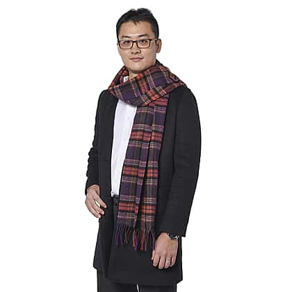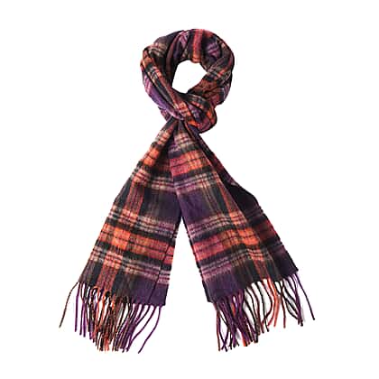 Plaid Pattern 97%Wool Scarf (Size 30x167+8cm) - Black and Orange