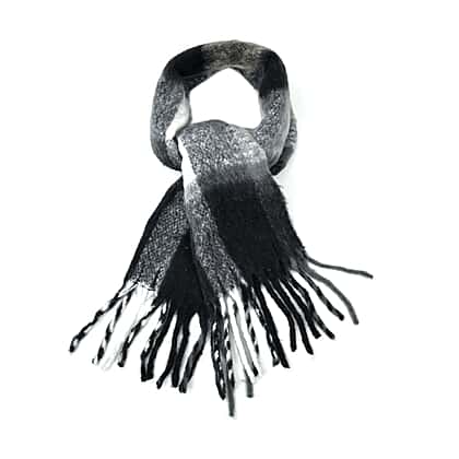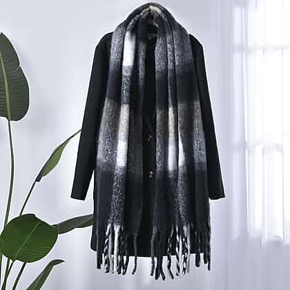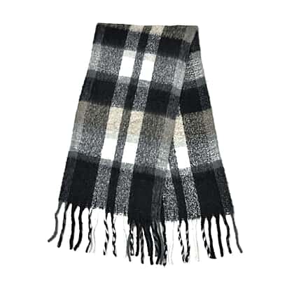 Check Pattern Scarf with Tassel (Size 182x75 Cm) - Black & Grey