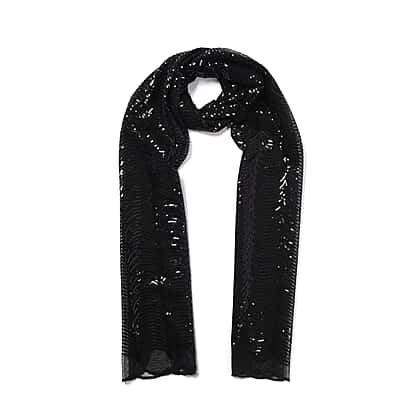Scallop Pattern Soft Sequin Scarf in Black Colour