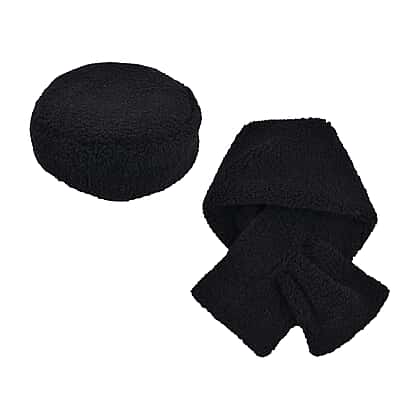Set of 2 - Faux Fur Bucket Hat and Scarf - Black