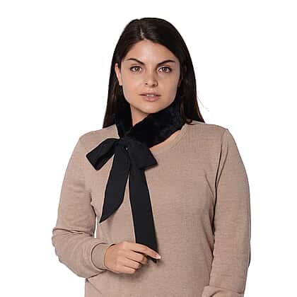 Set of 2 Solid Colour and Dot Pattern Faux Fur Collar Scarf with Ribbon Strap in Black and Wine Colour Size 7.62x48.3x63.5x5.08cm