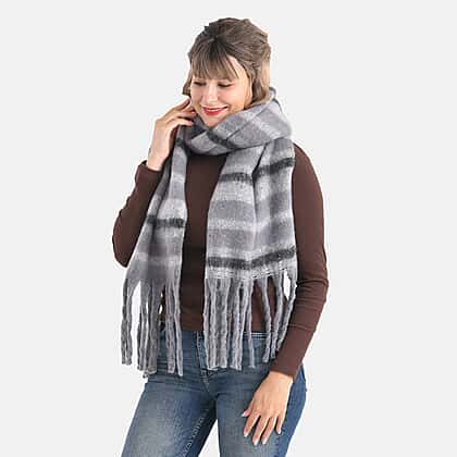 Striped Soft Touch Large Shawl with Tassel (180 x 50 cm) - Grey