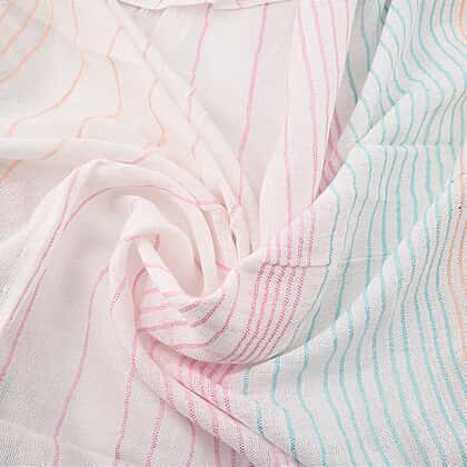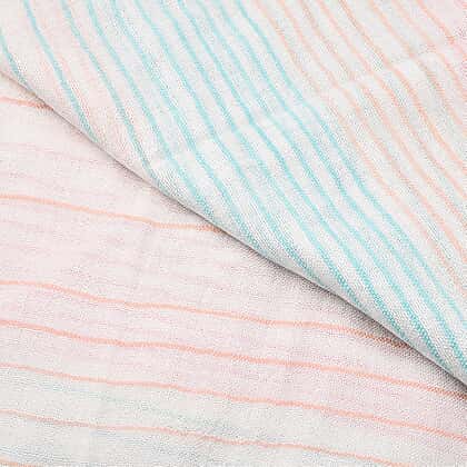 Tara Clothing 100% Cotton Stripe Pattern Shawl (Size 180x70 Cm) - Peach, Blue, White & Pink