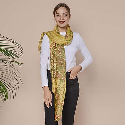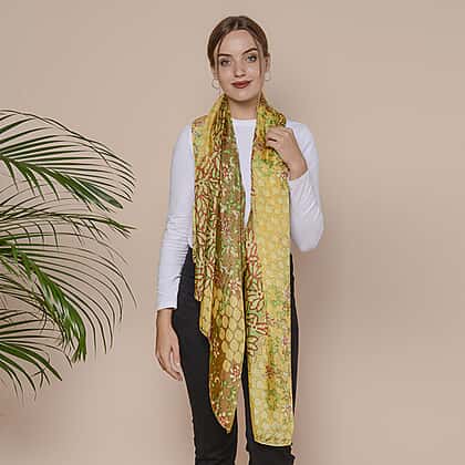 - ENTICING PRINTS - The yellow scarf looks stunning because of its lovely sheen and vivid floral prints