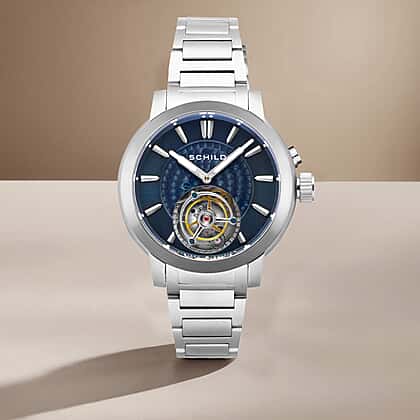 SCHILD Freidrich Tourbillon Limited Edition Navy Dial 10ATM Water Resistant Watch With Stainless Steel Bracelet - Leather Strap