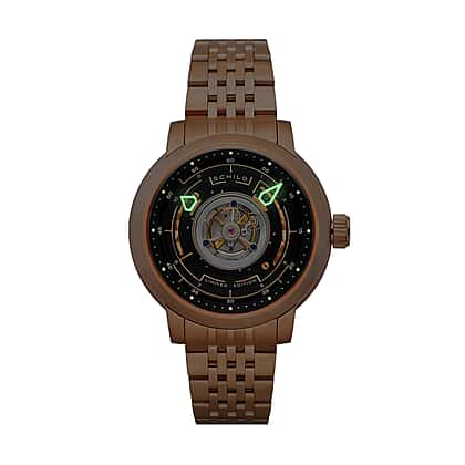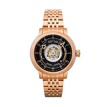 SCHILD Heinrich Cyclone Automatic Tourbillon Rose Gold Dial 10ATM Water Resistant Watch With Stainless Steel Bracelet & Leather Strap
