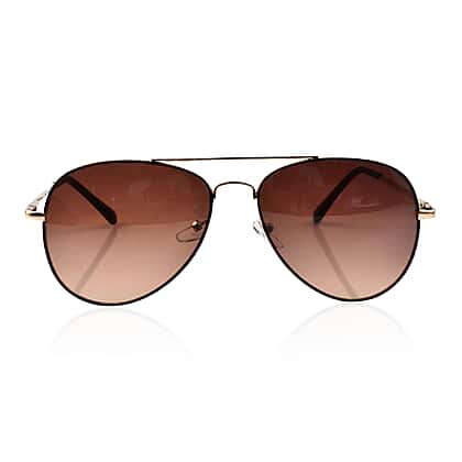 Make your summer holiday cooler with these stylish aviator sunglasses. The frame is made from -tongolde metal, and the body is made from durable polycarbonate material. It has brown lenses with scratch resistance and UV400 ultraviolet protection from harmful sun rays. It features a metal hinge and nose grips to give you a comfortable fit and keep the glasses in place.