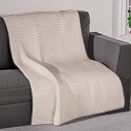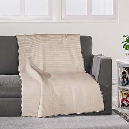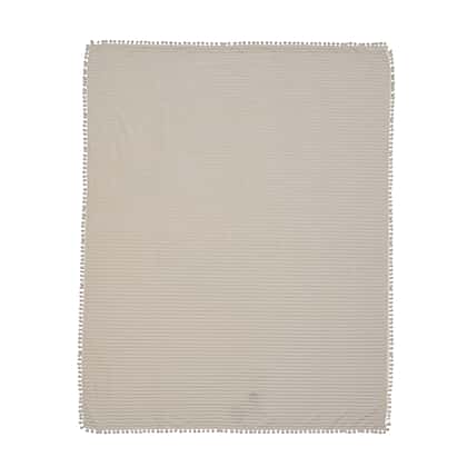 Season Launch Stripe Flannel Blanket with Pompom Border (Size 210x150 cm) - Cream