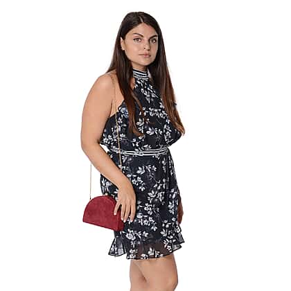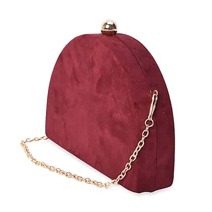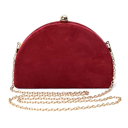 Semi Circle Clutch Bag with Detachable Shoulder Chain Strap in Burgundy Colour Size 20x13x4.5 Cm
