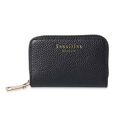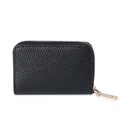 Sencillez - Genuine Leather Card Holder RFID Wallet with Zipper Closure (Size 11x2x7cm) - Black