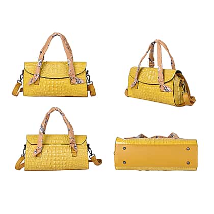 Sencillez 100% Genuine Leather Croc Embossed Pattern Convertible Bag with Shoulder Strap - Yellow