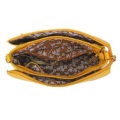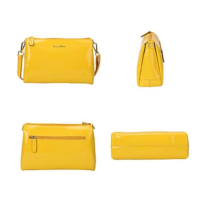 SENCILLEZ Genuine Leather Crossbody Bag with Detachable Strap - Yellow