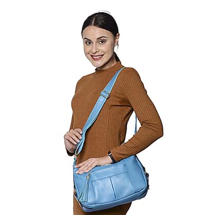 SENCILLEZ 100% Genuine Leather Crossbody Bag with Zipper Closure (Size 29x10x21cm) - Ocean Blue