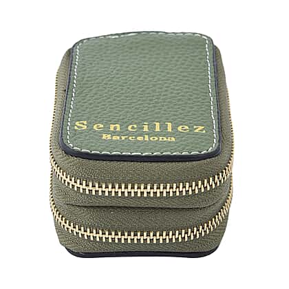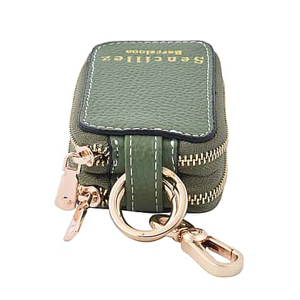 SENCILLEZ 100% Genuine Leather Key Holder Chain with Detachable Lobster Clasp and Zipper Closure - Green