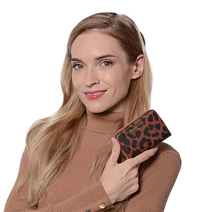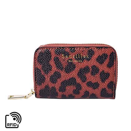 SENCILLEZ 100% Genuine Leather RFID Protected Leopard Pattern 11 Slots Card Holder Wallet in Brown Colour
